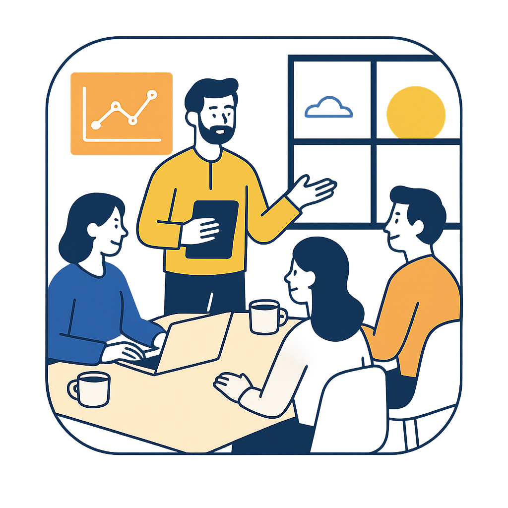 Nos reunimos todos los viernes de 6:30 a. m. a 8:00 a. m. en un formato híbrido que combina sesiones virtuales y presenciales.